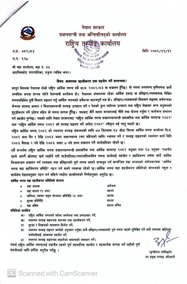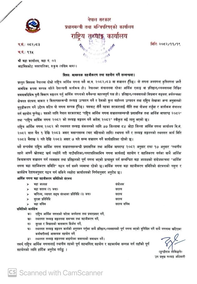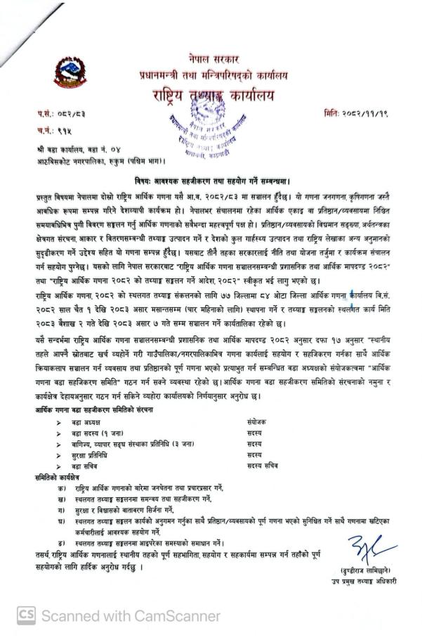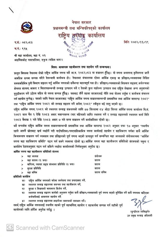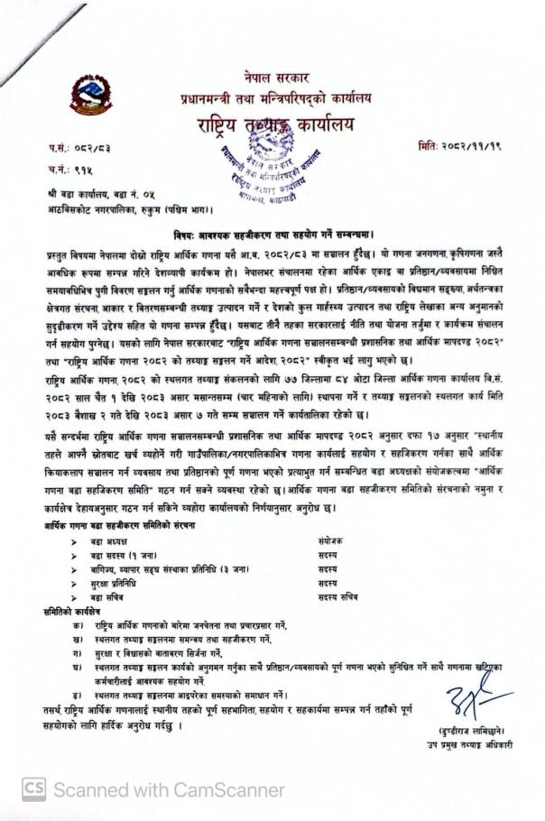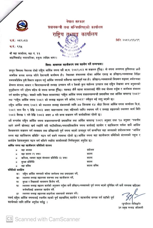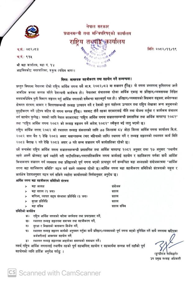 आवश्यक सहजीकरण तथा सहयोग गर्ने सम्बन्धमा ।